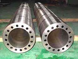 工件裝夾形式:筒體左側(cè)液壓卡盤夾持,筒體右側(cè)液壓中心架夾持,工件可數(shù)控繞軸線分度。