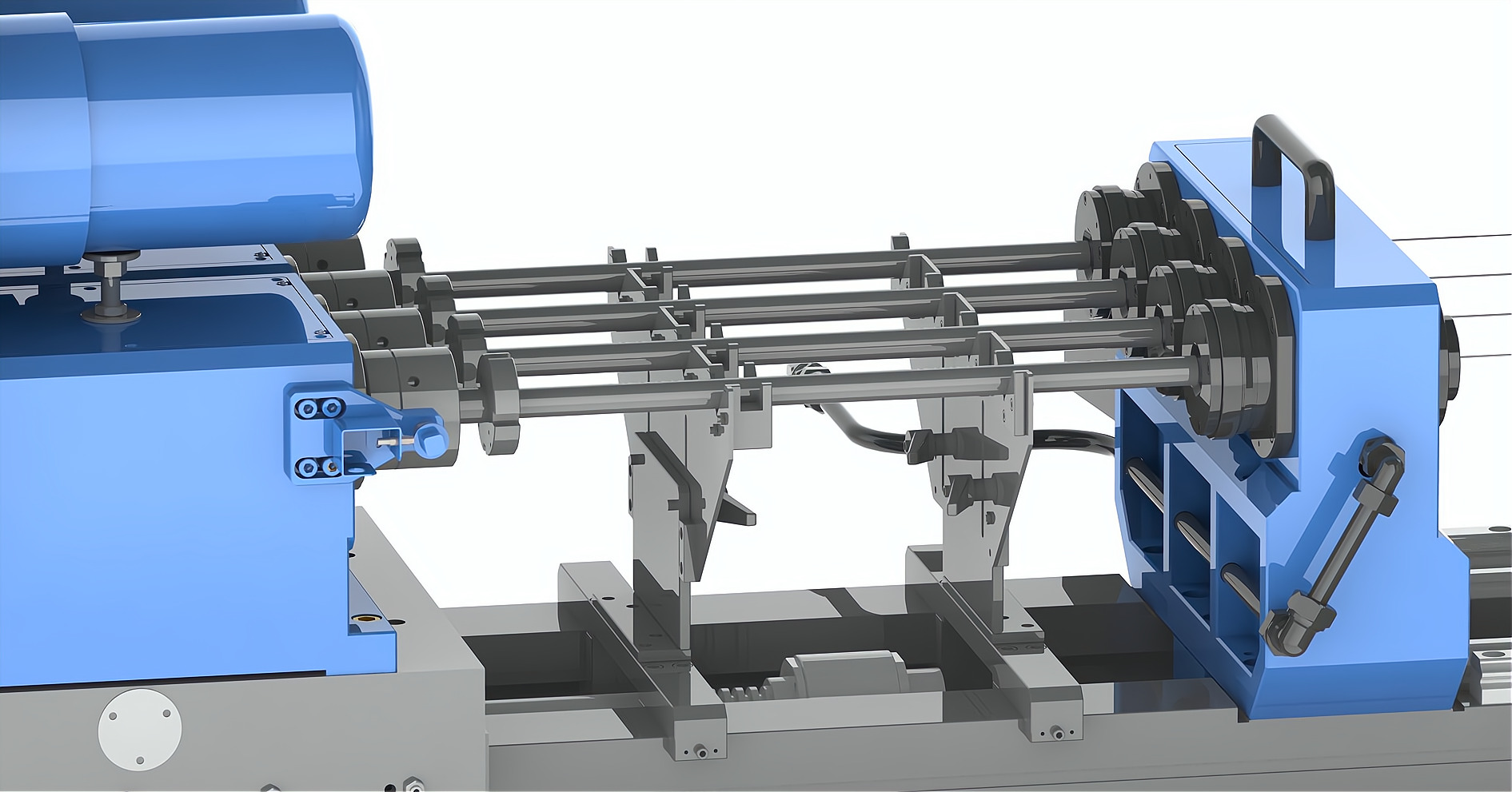 工件裝夾: 采用氣動或者液壓雙內(nèi)錐頂盤,配合工件外圓倒角,從工件左右兩端定位及夾緊工件