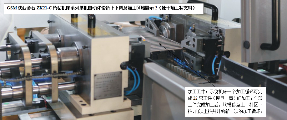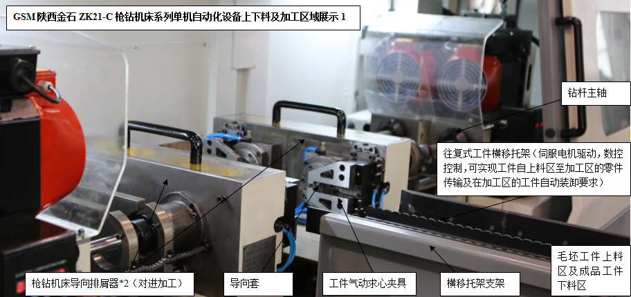針對槍鉆加工領(lǐng)域特點(diǎn)和不同用戶的設(shè)備需求,陜西金石設(shè)計(jì)生產(chǎn)研發(fā)的ZK21-C槍鉆機(jī)床系列單機(jī)自動化產(chǎn)品(人工低強(qiáng)度參與的上下料、自動裝卸、自動加工),可以使得用戶在應(yīng)對大批量軸類零件的精密深孔加工場合擁有了更多更好的選擇。